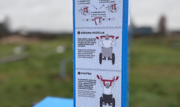 RTU studentu pilsētiņā uzstādīts Omnigym pamatkomplekts, kas sastāv no 3 āra trenažieriem – trenažiera spiešanai guļus, pietupienu trenažiera un multifunkcionālās stacijas ķermeņa viduklim.